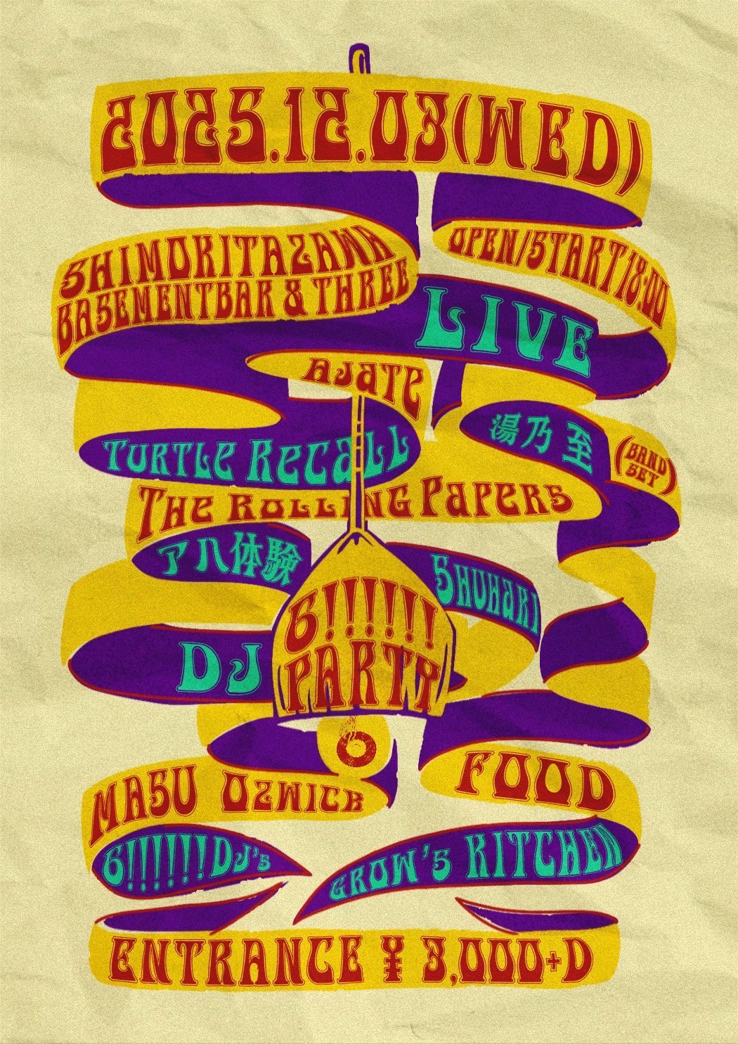 LIVE:Ajate / shuhari / Turtle Recall / The Rolling Papers / アハ体験 / 湯乃至(Band set)